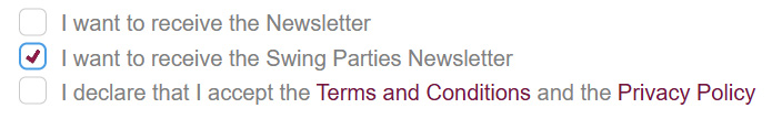 Just fill in your details HERE and select to receive newsletters for Swing parties.