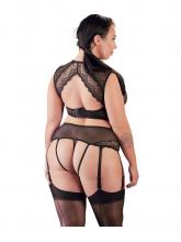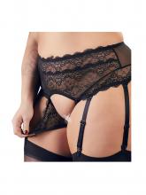 - Garter belt with built-in thong. Adjustable stocking suspenders.