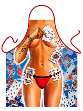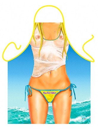 Humorous apron produced in anti-stain fabric with a print of high sharpness and durability that allows it to be washed several times without losing colors.