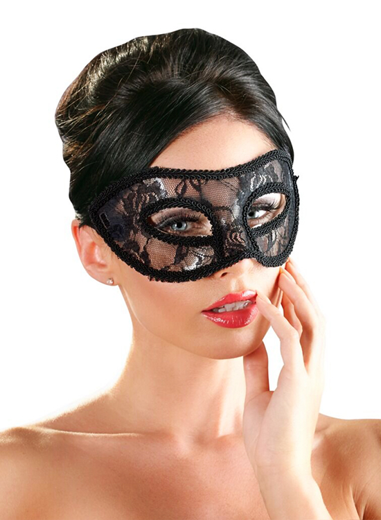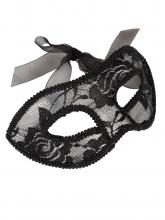 With a molded structure of transparent plastic, this mask is lined with elegant lace fabric and adjusts at the back with an organza bow.