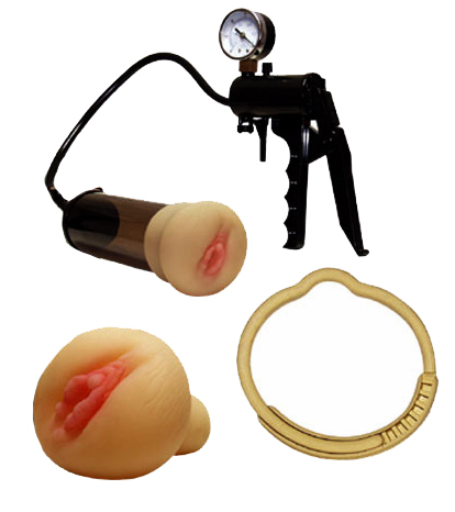 The kit also includes a constriction ring to help maintain a hard erection after use.