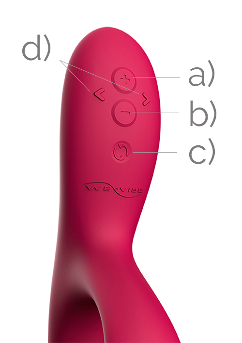 Pair with the mobile device: Press button c) for 5 seconds, until the light starts to flash. Open the APP and pair your toy.