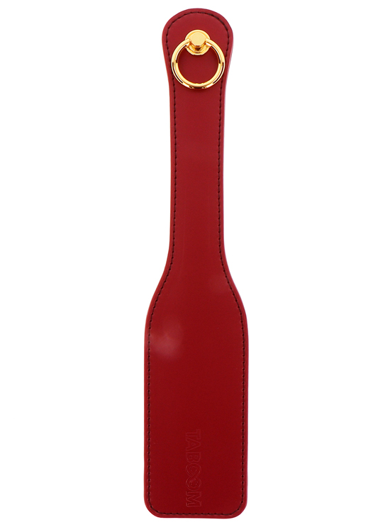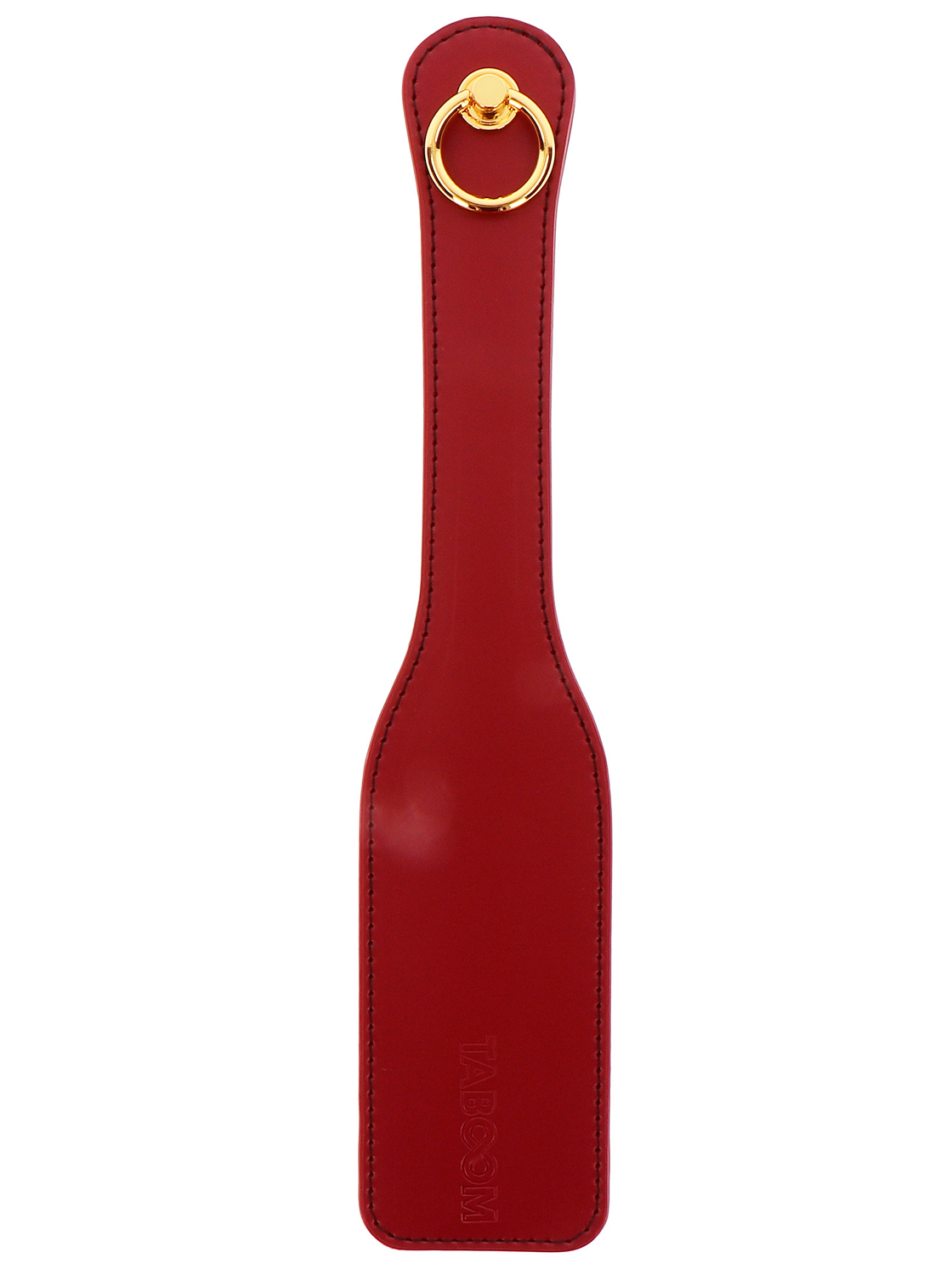 Produced in high-quality Bordeaux vegan leather with golden hardware, this paddle is perfect for intimidating with its sound.