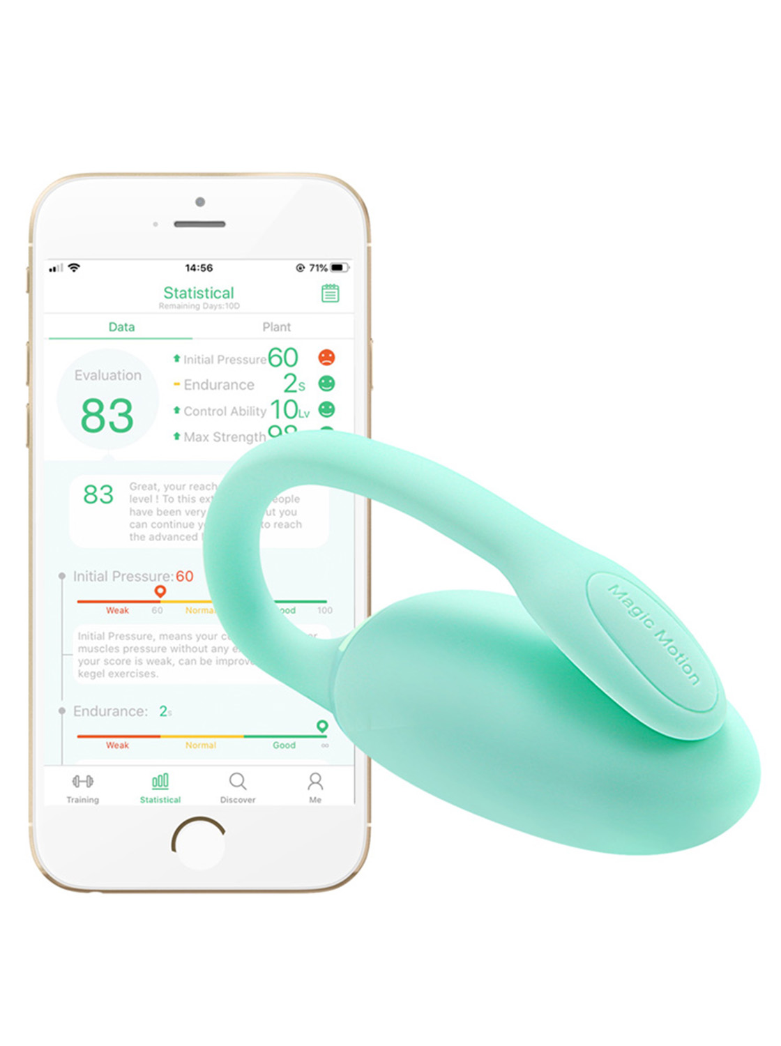 The APP records statistical data on resistance, control and maximum strength of your pelvic muscles, to be able to track your progress. It also helps beginners identify their pelvic muscles, through a warm-up plan to ensure the effectiveness of the exercises.