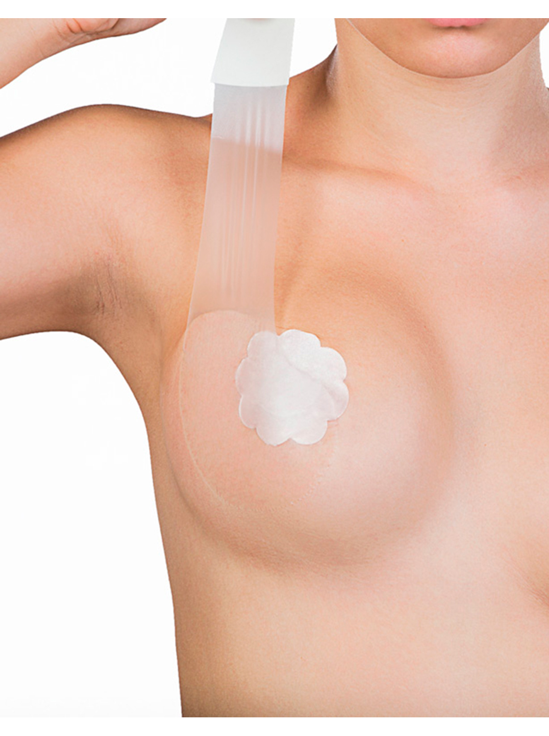 These adhesives support cup sizes from A to F; depending on your cup size, the L and T-shaped adhesives can be cut to double the usage. Each box contains 6 sets for women with cup sizes A and B, and 3 sets for women with cup sizes C to F. It also includes silk nipple covers.