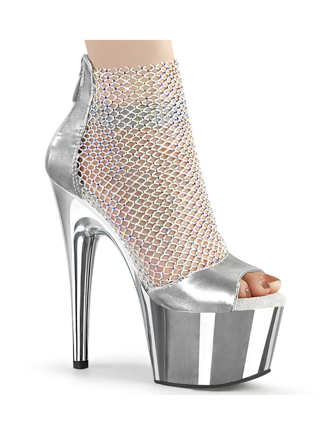 PLATFORM RHINESTONE MESH SHOOTIE SANDALS - SILVER
