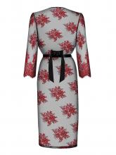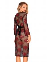 The Redessia Robe, entirely made of black mesh with red floral embroidery and a satin belt, is an extremely sensual piece to wear on a night of passion and love.
