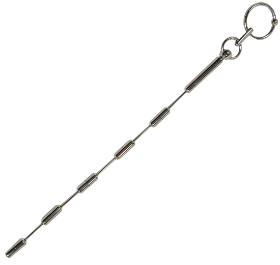 Urethral plug made of stainless steel with rings at the end for more controlled handling.