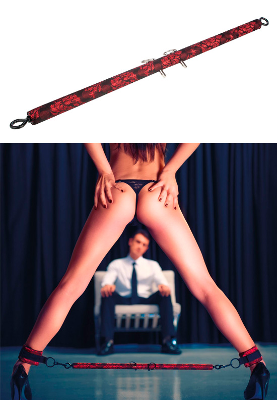 Increíblemente sexy, los extremos tienen dos anillos universales donde luego puedes ajustar las esposas a tu gusto.