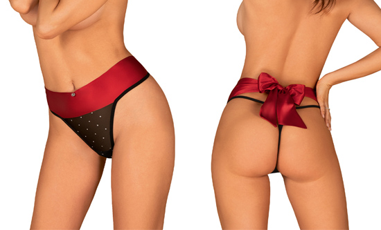 ¡Esta braga Tienesy es el regalo perfecto para ti y tu ser querido! Confeccionado en tul negro con bolitas brillantes y un precioso lazo decorativo de raso rojo.