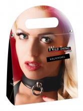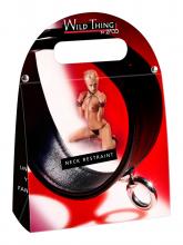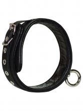 Salvaje y sexy collar fabricado íntegramente en cuero negro con argolla de metal cromado para colocar accesorios.