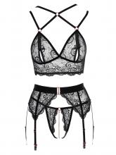 Producido en encaje y terciopelo, y se compone de 3 piezas: sujetador, cinturón de aleación y tanga.
