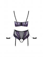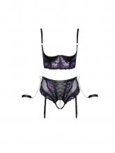 - Braga con abertura en la entrepierna, cadena decorativa removible; ligas ajustables y removibles; esposas de velcro removibles.