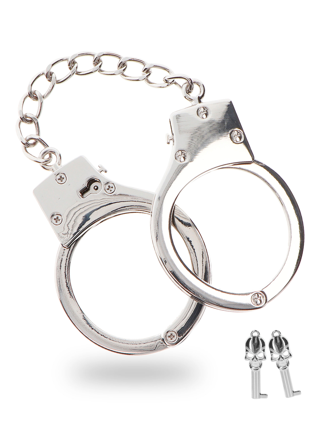 Producidas en metal con baño cromado, estas esposas de calidad intermedia son bastante robustas y bien acabadas.