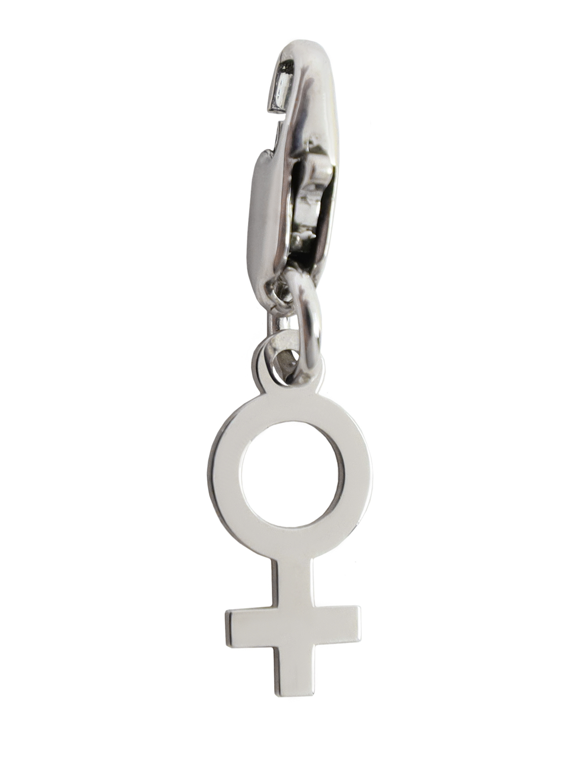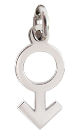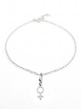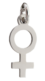 Pendiente de símbolo de género mujer, hecho de plata 925 para ser adjuntado a cualquier collar, pulsera o tobillera de la colección de joyería swinger CUPIDO.