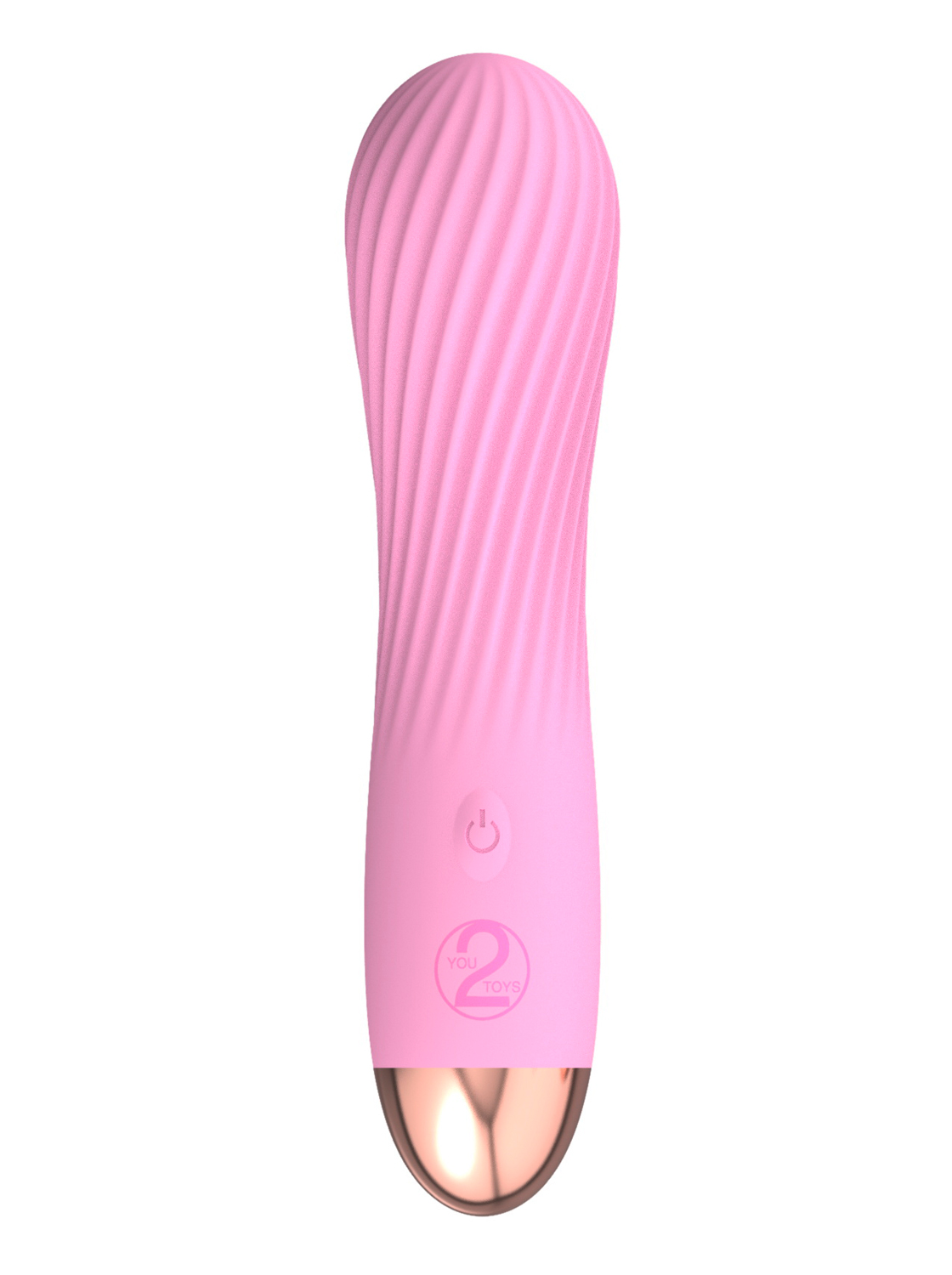 Ideal para la estimulación del clítoris o para masajear la entrada de la vagina con una leve introducción, este mini vibrador de solo 3 cm de diámetro tiene estrías estimulantes para intensificar la estimulación, y es una buena opción para mujeres con vaginismo que no toleran penetraciones muy profundas.