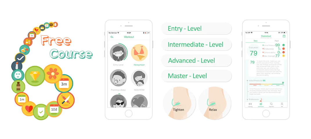 La APP registra datos estadísticos sobre la resistencia, control y fuerza máxima de tus músculos pélvicos, para que puedas seguir tu progreso. También ayuda a los principiantes a identificar sus músculos pélvicos, mediante un plan de calentamiento y así asegurar la efectividad de los ejercicios.