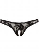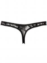 TANGA DE ENCAJE CON APERTURA - NEGRO