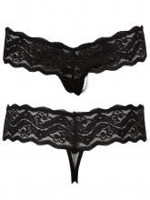 TANGA DE ENCAJE CON HILO DE PERLAS - NEGRA