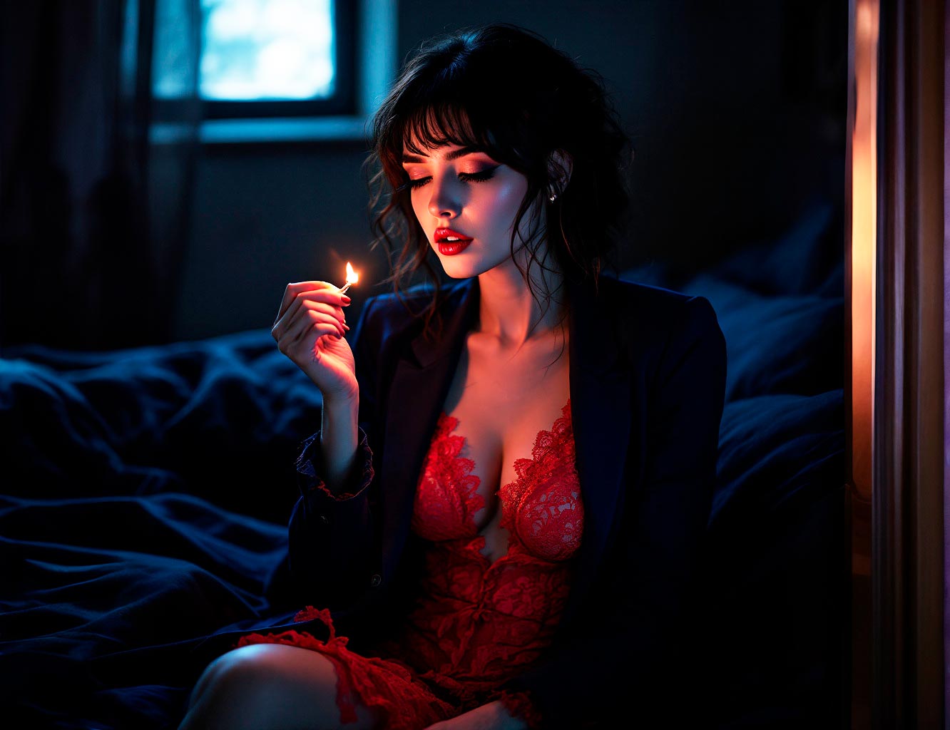 As chamas amarelas iluminam o quarto conferindo-lhe um ambiente romântico e atrevido.