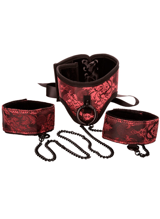 Renda-se ao seu Mestre com este lindíssimo conjunto de coleira e algemas unidas por correntes.