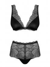 O soutien deste conjunto destaca-se por ser sem aro de metal e sem almofadas, proporcionando um ajuste natural e confortável. A ausência de aros e almofadas permite uma sensação de liberdade, sem comprometer o suporte necessário. A abertura por colchetes na parte de trás facilita o vestir e despir, oferecendo praticidade ao quotidiano. As alças ajustáveis são outro fator de conforto, permitindo um ajuste personalizável para garantir o melhor suporte e ajuste ao corpo de cada mulher.