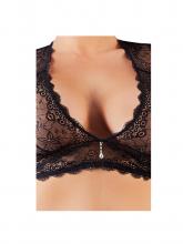 Conjunto Bárbara produzido em renda de padrão floral.