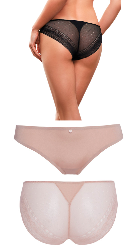Fabricada em microfibra na frente, e renda plana atrás com efeito tanga. Acabamentos invisíveis que não marcam.