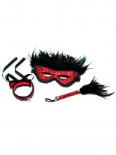 - Máscara de alta qualidade, almofadada, com elástico atrás e decorada com penas e tule;