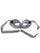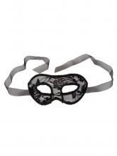Com estrutura moldada de plástico transparente, esta máscara está forrada com tecido rendado e elegante e ajusta atrás com laço de organza.