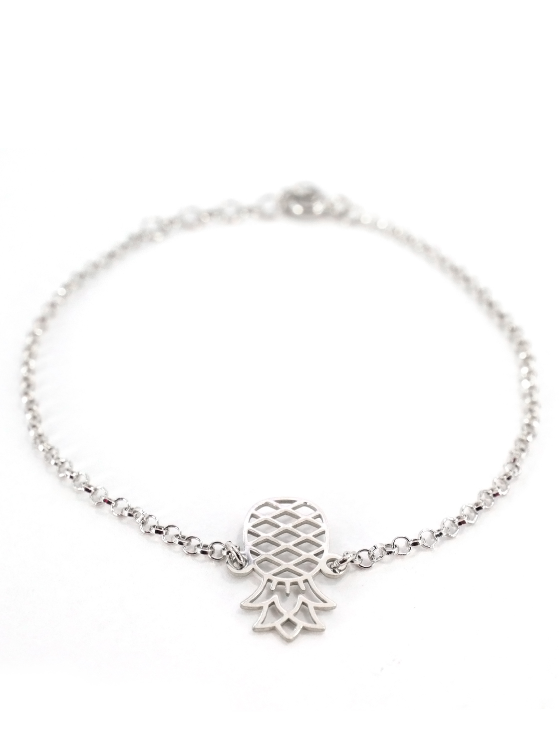 Esta elegante pulseira fabricada em Prata 925 inclui o símbolo mais divertido e discreto dos Swingers. O Ananás invertido.