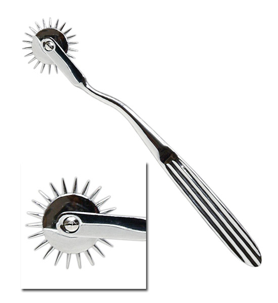 A roda está coberta com inúmeros picos afiados com 0.5cm cada e a estimulação dos picos é deveras fascinante. Se estiver vendada, que é como aconselhamos, vai pensar que está a ser cortada com um bisturi, quando na verdade nada lhe terá penetrado na pele...