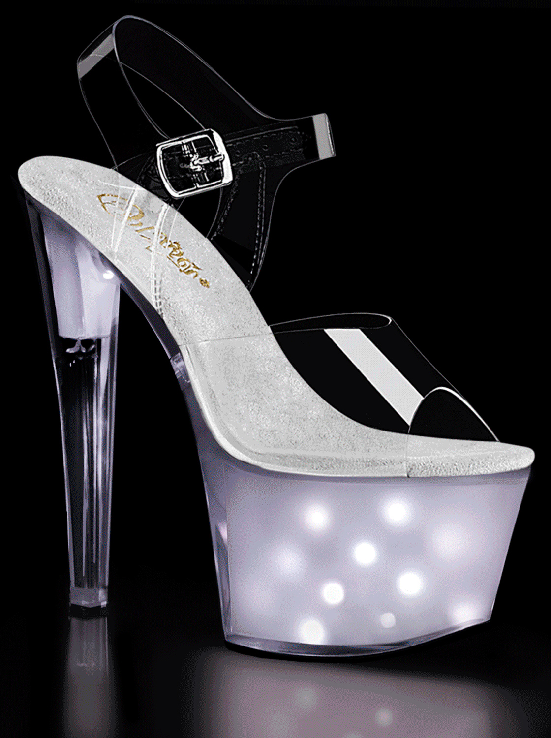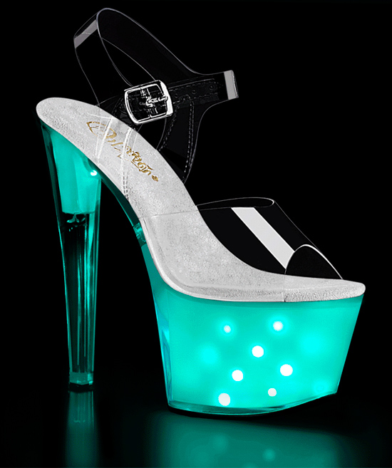 Estas sandálias Illuminator são transparentes em cima mas com luzes LED na plataforma.