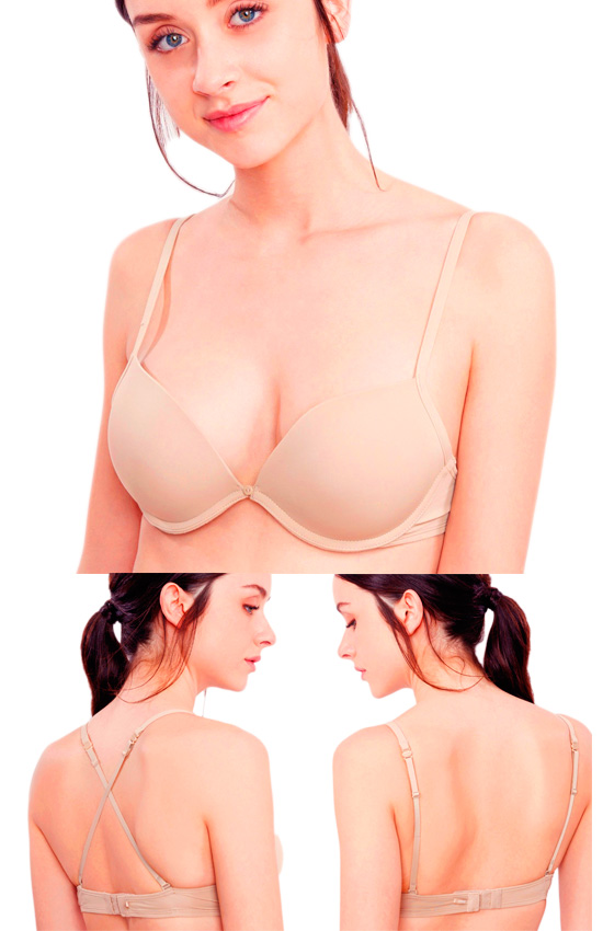 Este modelo une os seios deixando o decote muito bonito e discreto.