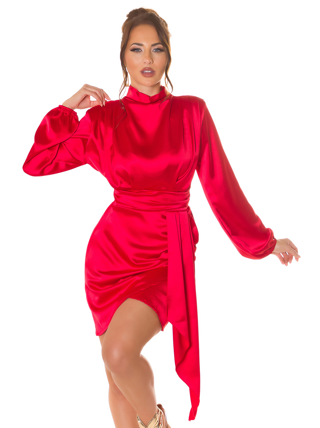 Super elegante, o vestido Camille é assimétrico e produzido em tecido acetinado.