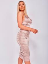 Vestido Willow de comprimento midi, produzido em tecido acetinado.